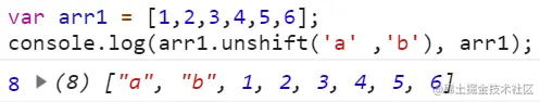 unshift 向数组的开头添加一个或多个元素,并返回新的长度。