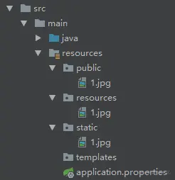可以在上面 4 个路径下都放一张同名但内容不同的图片, 访问一下即可验证. 访问也很简单, 直接加资源名即可 : localhost:8080/ + 资源名. 比如: localhost:8080/123.jpg