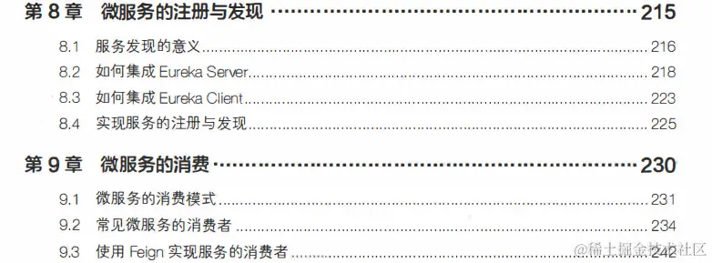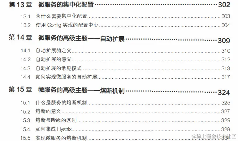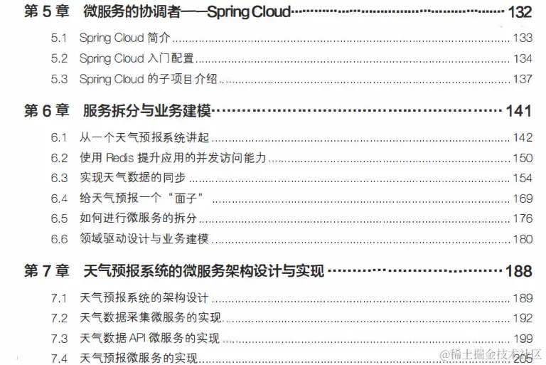 **第三部分(第8至16章):**通过引入Spring Cloud技术栈来实现对微服务的治理, 重点讲解服务注册与发现、服务通信、服务消费、负载均衡、API网关、集中化配置、容器部署、 日志管理 、服务熔断、自动扩展等方面的话题。
