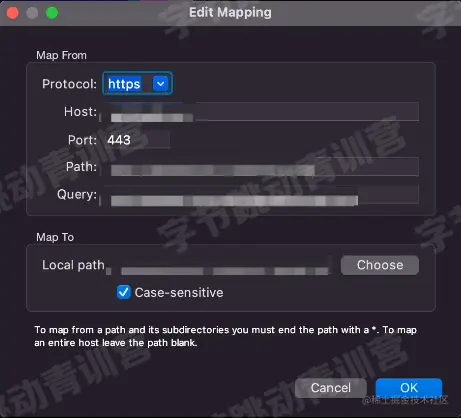 右键选中第一步的接口, 选择Map Local, Local Path选择第二步的文件。