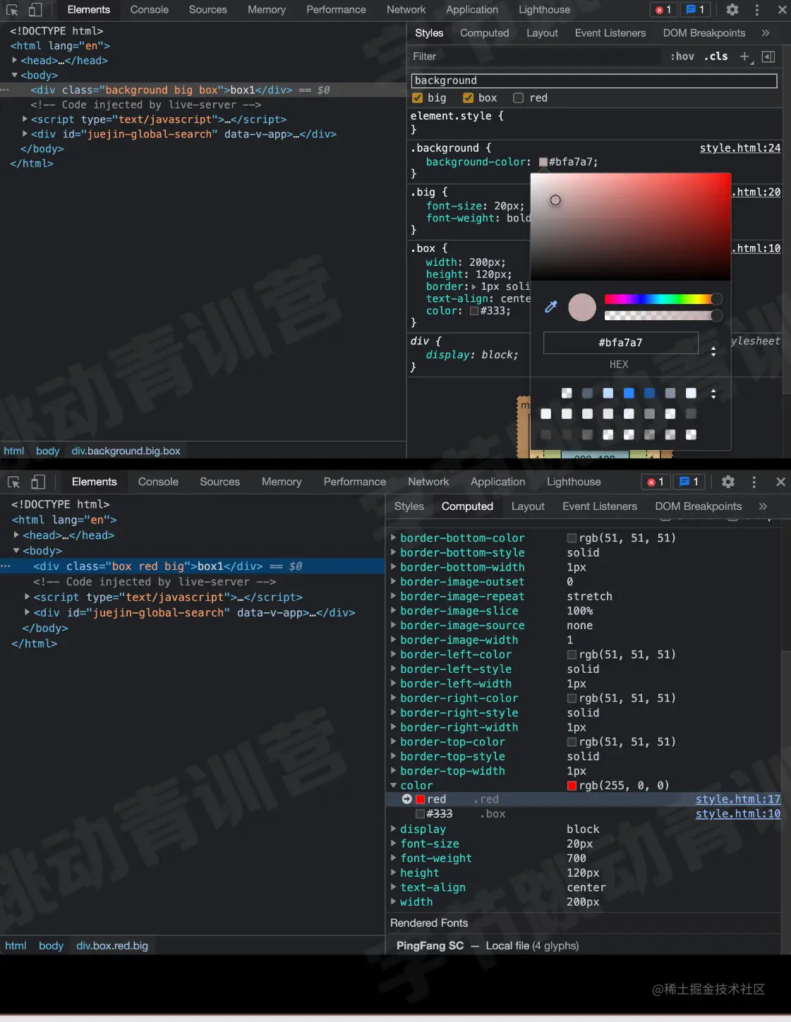 Computed下点击样式里的箭头可以跳转到styles面板中的CSS规则