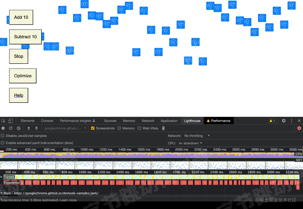 页面卡顿=>查看FPS指标=>寻找性能瓶颈=>优化代码