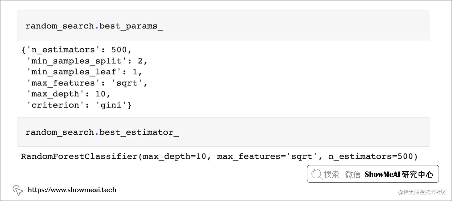 拟合随机搜索后,我们取出最佳参数和最佳估计器。