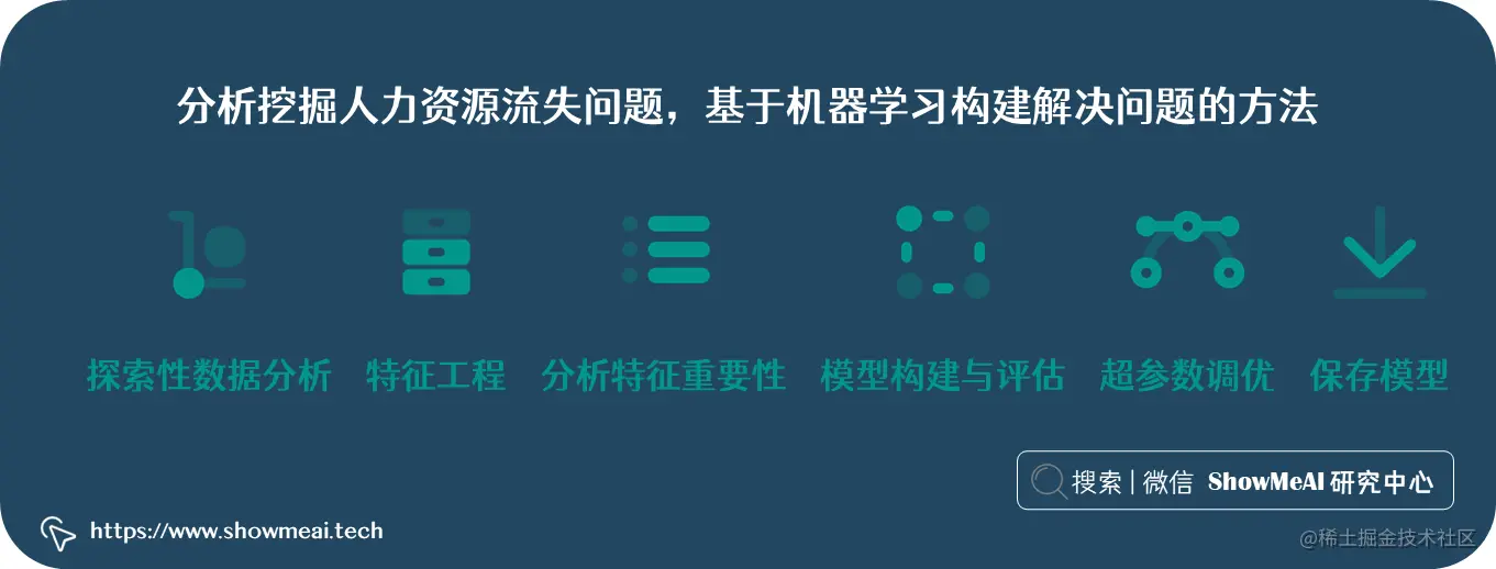 在本项目中,ShowMeAI 带大家通过数据科学和AI的方法,分析挖掘人力资源流失问题,并基于机器学习构建解决问题的方法,并且,我们通过对AI模型的反向解释,可以深入理解导致人员流失的主要因素,HR部门也可以根据分析做出正确的决定。