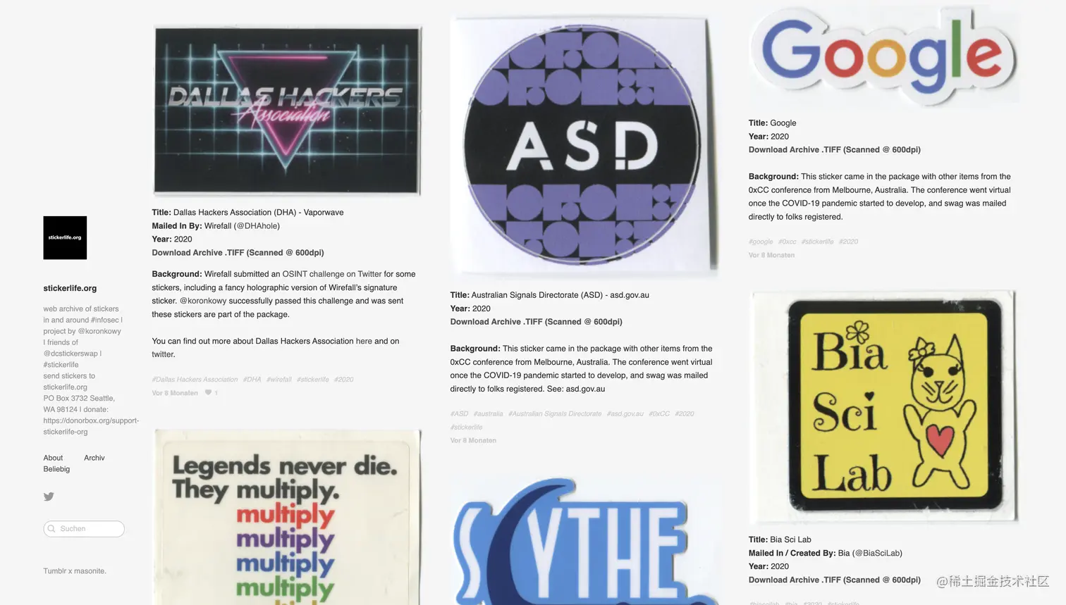 - Stickerlife - 这个网站收集了世界各地的好看的贴纸,每个贴纸都有发布的时间和背景故事,还可以下载高清的图片,很多好看的,真想拥有!