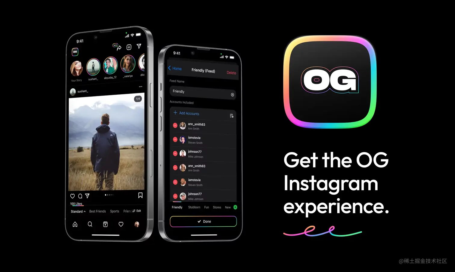 - The OG App - 这是一个第三方的 instagram 客户端,简洁了很多功能。删除了广告和推荐内容,去掉了 Reels 和探索页面之类的干扰内容,仅查看你关心的人的帖子,还下载任何帖子。