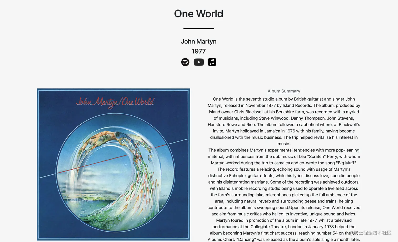 - 死前必听的 1001 张专辑 - 这个网站每天都会通过邮件发送给你一张音乐专辑,你还可以查看这个专辑的详情介绍和用户评价,也可以查看在 Spotify/Apple Music/YouTube 的收听链接。这些专辑是来自 Universe Publishing 于 2005 年出版的一本音乐参考书。作为 1001 Before You Die 系列的一部分,它汇集了由音乐评论家小组从 1950 年代至 2010 年代评选的流行音乐中最重要、最有影响力的专辑著作。