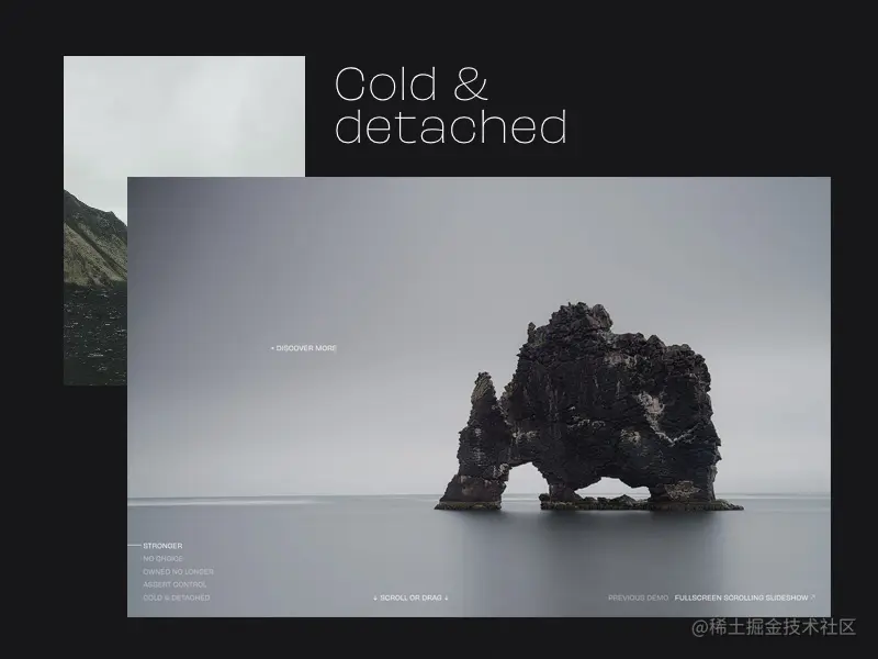 - FullscreenScroll - 一个很好看的可以滚动的全屏幻灯片项目,带有由 GreenSock 的 Observer 插件提供支持的内容视图,动效很好看,开源的。可以在codrops这里看详细介绍。