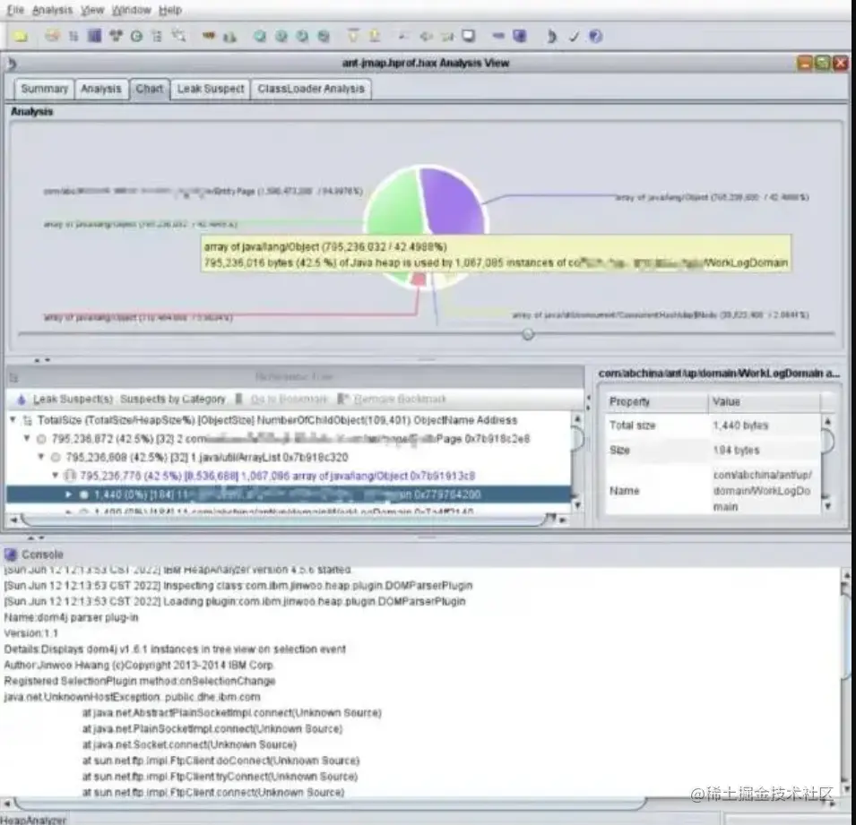 进一步分析:使用 jmap -dump 命令dump内存,然后使用使用 ha457.jar 离线分析。