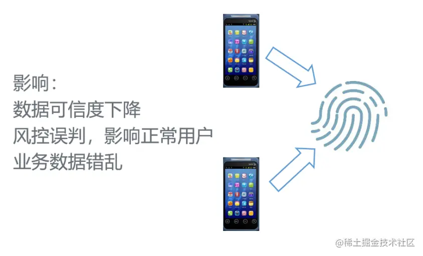 设备信息的篡改除了可能会影响指纹计算,还有可能会造成指纹数据污染。大量篡改后的错误数据如果和正常用户的设备产生关联,会导致正常用户的数据受到不可控的影响,而且这种数据想从系统中剔除干净是比较困难的。