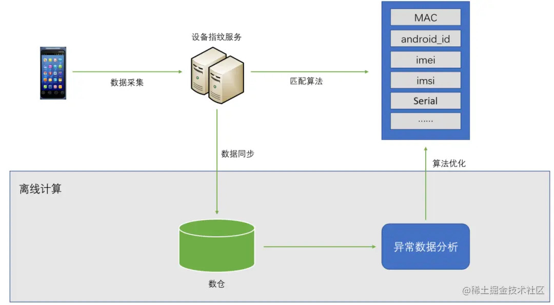 并且,指纹计算算法并不是一成不变的,新版本操作系统发布,新型号手机,这些随时都有可能导致数据采集出现异常,这需要设备指纹具备持续性的对异常数据的监测能力。