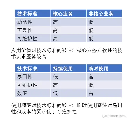 在不同的应用场景下选择合适的低代码开发平台,我在这里为了区别分成两个类:应用价值和使用频率对技术标准的影响。
