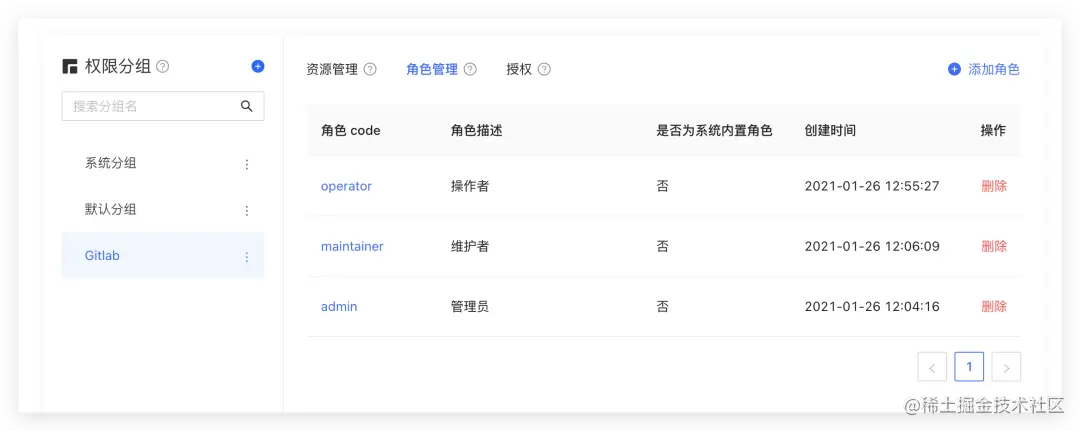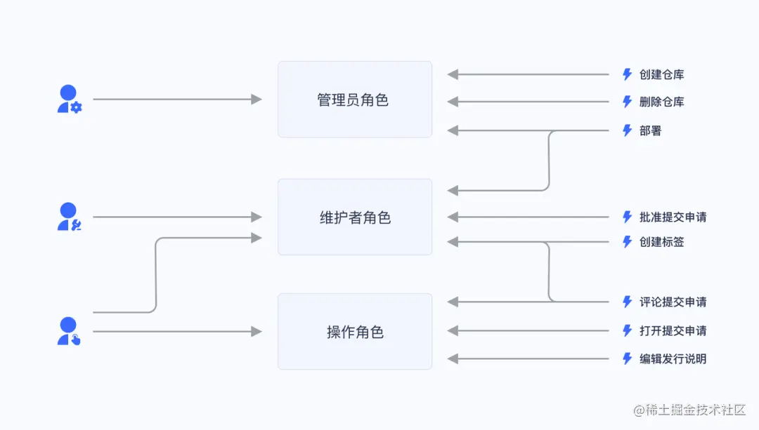 我们授予某个用户「Admin」这个角色,他就具备了「创建代码仓库」和「删除代码仓库」这两个权限。