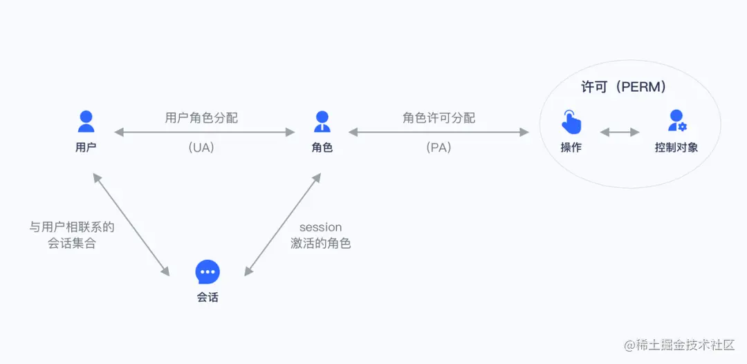 当使用 RBAC 时,通过分析系统用户的实际情况,基于共同的职责和需求,授予他们不同角色。你可以授予给用户一个或多个角色,每个角色具有一个或多个权限,这种 用户-角色、角色-权限 间的关系,让我们可以不用再单独管理单个用户,用户从授予的角色里面继承所需的权限。