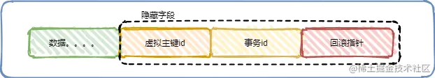 MVCC 其实维护了 三个隐藏字段 隐藏主键,事务id,回滚指针,结构如下