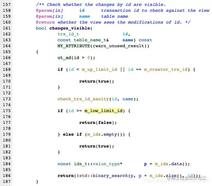 - 首先比较DB_TRX_ID < up_limit_id, 如果小于,则当前事务能看到DB_TRX_ID 所在的记录,如果大于等于进入下一个判断