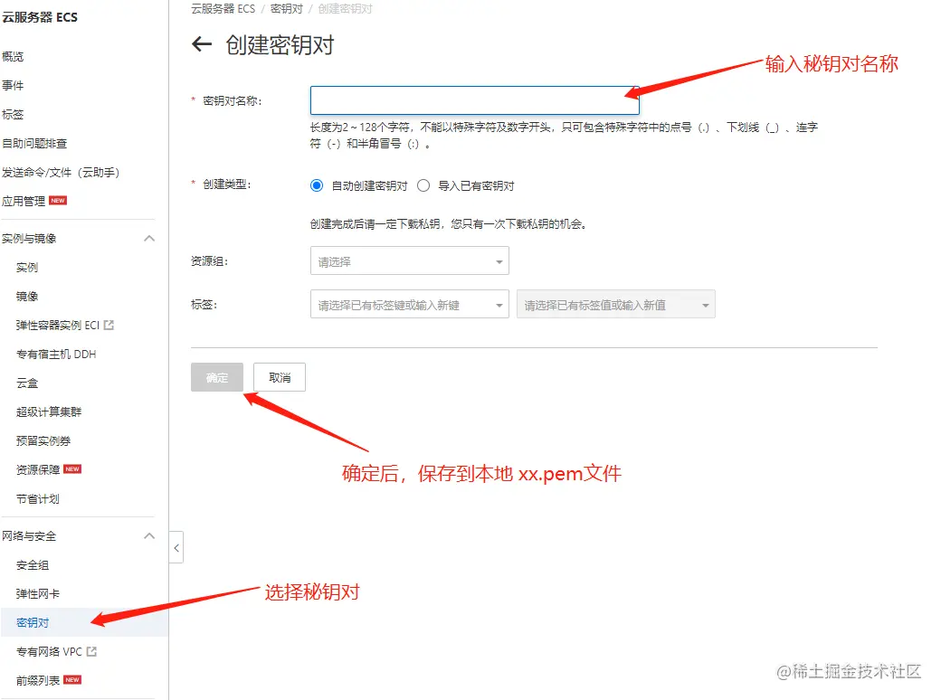 - 创建秘钥对;