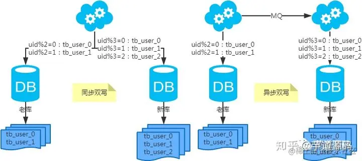 - 水平扩容表(双写迁移法)