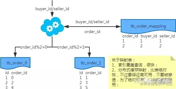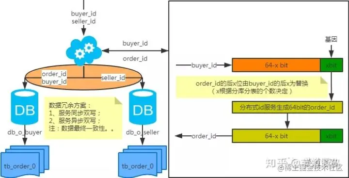 注:按照order_id或buyer_id查询时路由到db_o_buyer库中,按照seller_id查询时路由到db_o_seller库中。感觉有点本末倒置!有其他好的办法吗?改变技术栈呢?