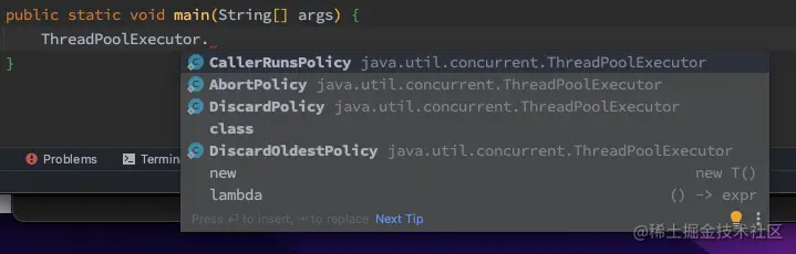 我们先来回顾下饱和策略的意义——由于达到线程边界和队列容量而阻塞执行时使用的处理程序。
