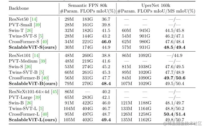 表4:Semantic FPN和UperNet框架对ADE20K分割的结果