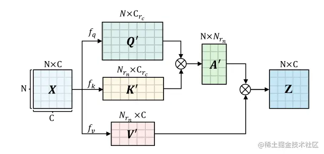 在Vision Transformer中,并不是所有的信息都是计算自我注意所必需的。因此,作者开发了可伸缩的自我注意(SSA),其中两个缩放因子(rn和rc)分别引入到空间和通道维度,产生了比普通的一个更有效的中间计算。如图3所示。