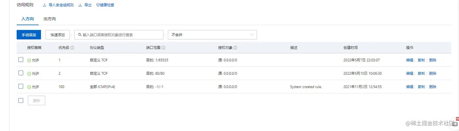 这里的入方向是其他主机能够访问这台服务器的端口,出方向是这台服务器能够输出数据的端口