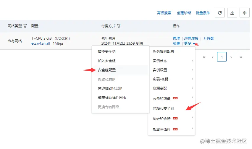 打开阿里云的官网进行登录,打开控制台,然后点击云服务器ECS,点击实例。右边点击更多,打开网络和安全组,安全组配置