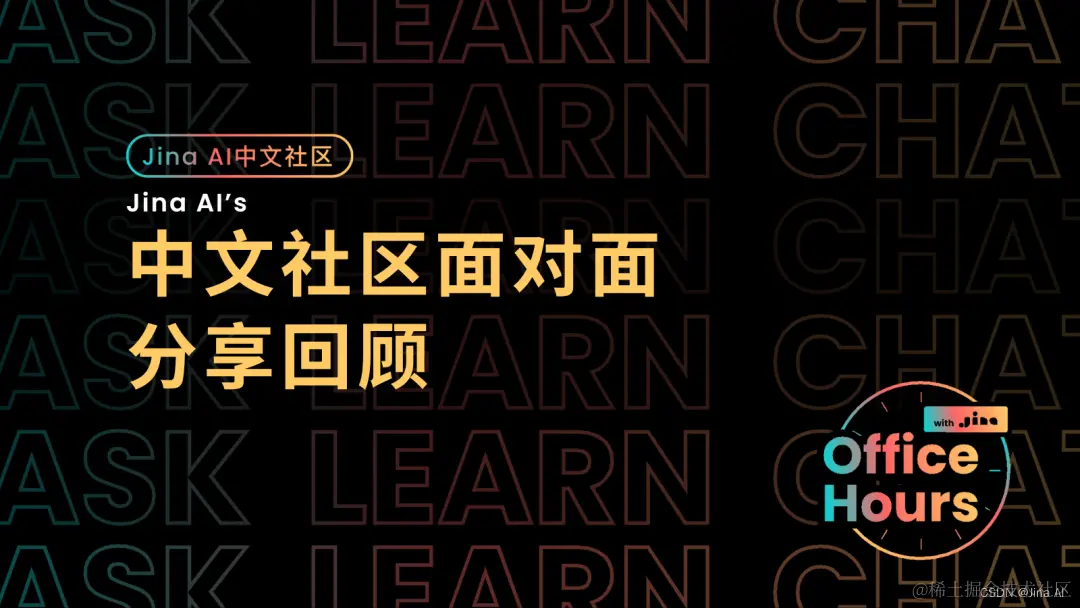 8 月 18 号 Jina AI 举办了「中文社区面对面」活动,本文为分享回顾。