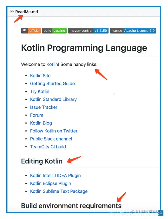 点击 kotlin,我们还可以预览 code目录、阅读 ReadMe.md等等