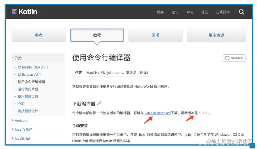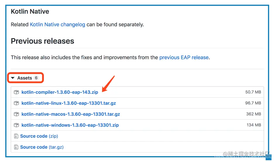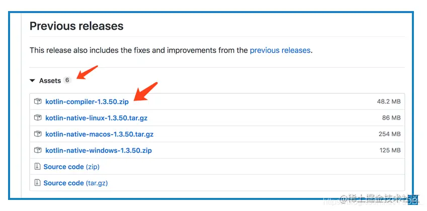 拉到最下面,定位到 “Assets”,下载 “ kotlin-compiler-1.3.50.zip ”
