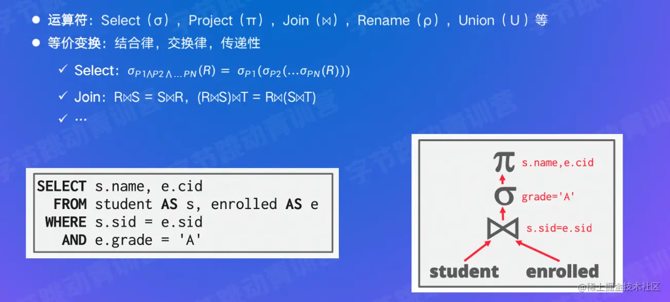 - 基于关系代数等价规则对逻辑计划进行变换