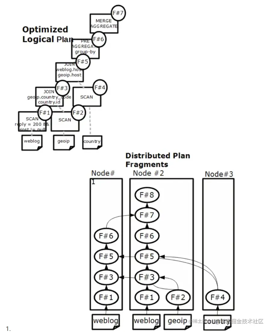 - 分布式物理执行计划的目标是在单机 Plan 的基础上最小化数据移动和最大化本地 Scan,生成 PlanFragment 树。