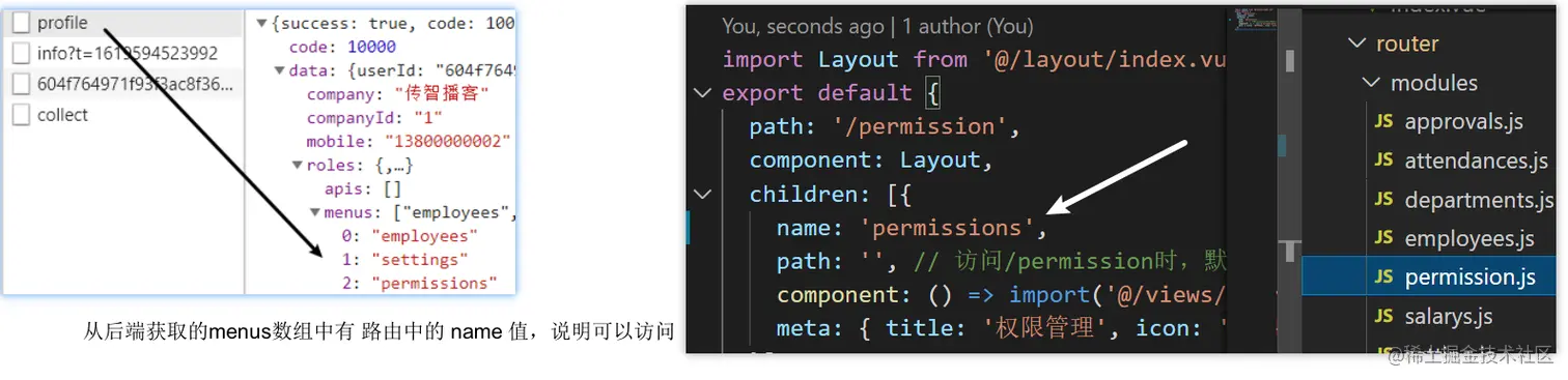 console.log('当前用户能访问的页面', menus) // ['salarys', 'settings']