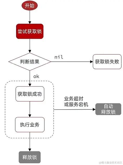 set nx ex获取锁,并设置过期时间,保存线程标识 - 释放锁时先判断线程标识是否与自己一致,一致则删除锁,且使用 Lua 脚本保证原子性