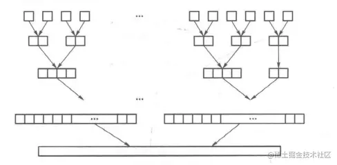 直到剩下1个长度为N的序列,则该序列为原序列完成排序后的结果,如下图所示: