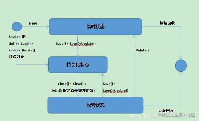 - 临时状态:对象在保存进数据库之前为临时状态。这时候数据库中没有该对象的信息,该对象的Id属性也为空。如果没有被持久化,程序退出时临时状态的对象信息会丢失,即在程序中new一个对象但是还未与Session关联;
