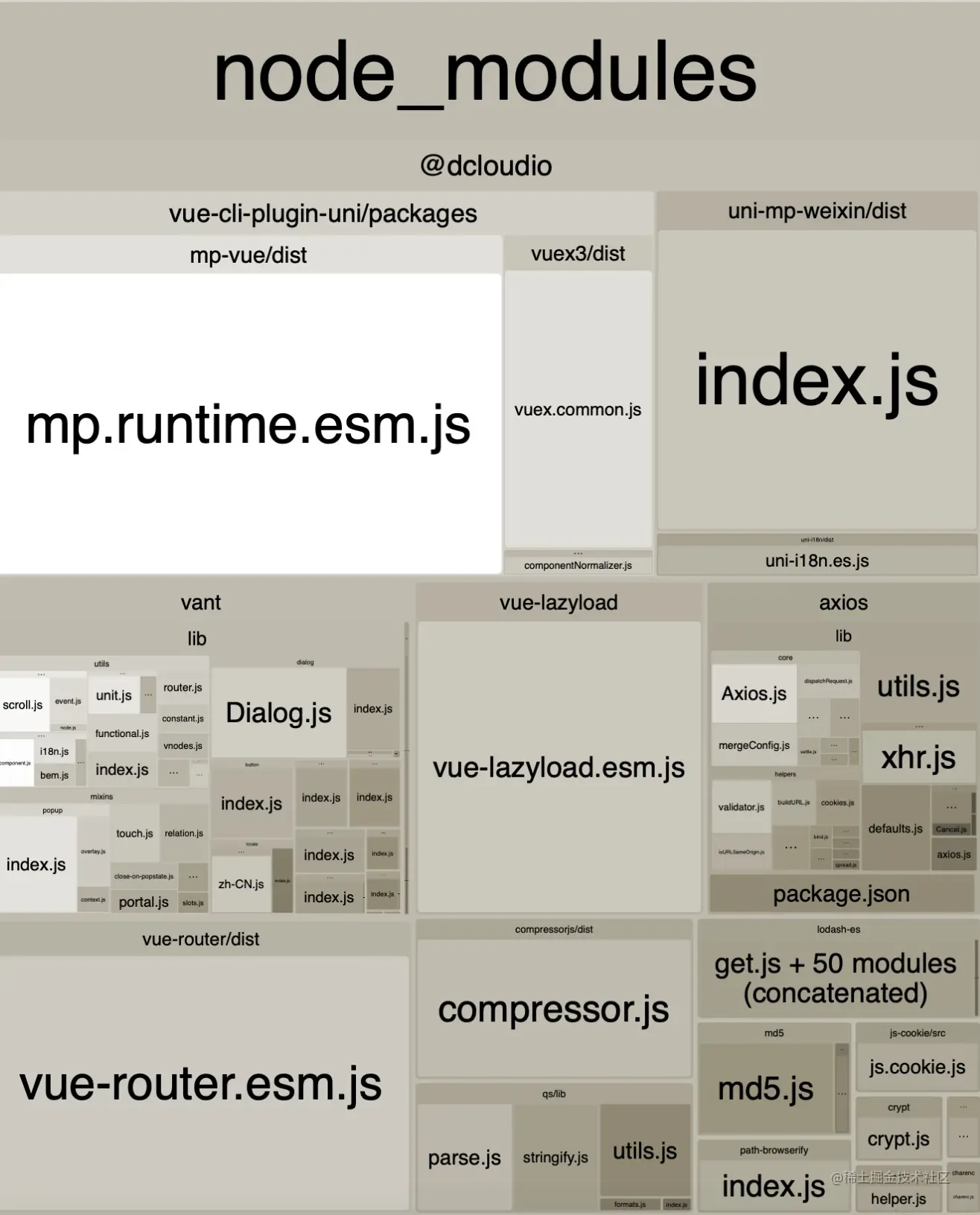 通过webpack包分析,发现一些小程序中没使用的包,也被打进了vendor.js中。其中最大的是vant,有30K+。