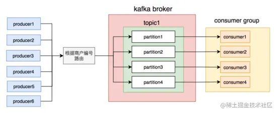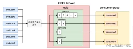这时我们才意识到,发消息时按 商户编号 路由 partition 的规则不合理,可能会导致有些 partition 消息太多,消费者处理不过来,而有些 partition 却因为消息太少,消费者出现空闲的情况。