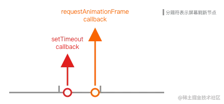 但,现在的设备,多调几次怕个锤子。另外,别忘了 setTimeout 的缺点:inactive tab 下仍然会执行。而 requestAnimationFrame 则完全不同,当页面处于未激活状态,该页面的屏幕刷新任务将会被系统暂停,并且requestAnimationFrame callback 其 “即时性、流畅度” 会更好(为了更直观地描述,我们再给出一些配图)。