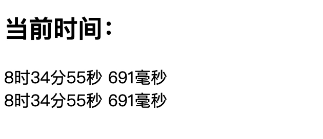 const timeMsg = `${currentTime.getHours()}时${currentTime.getMinutes()}分${currentTime.getSeconds()}秒 ${currentTime.getMilliseconds()}毫秒`