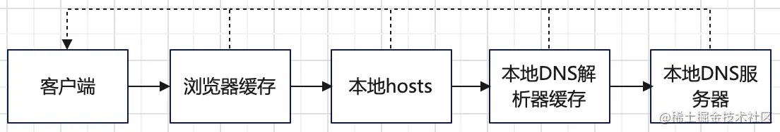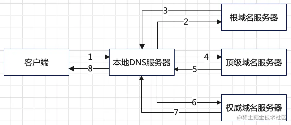 在浏览器输入 URL 回车后,首先有一个递归查找的过程: