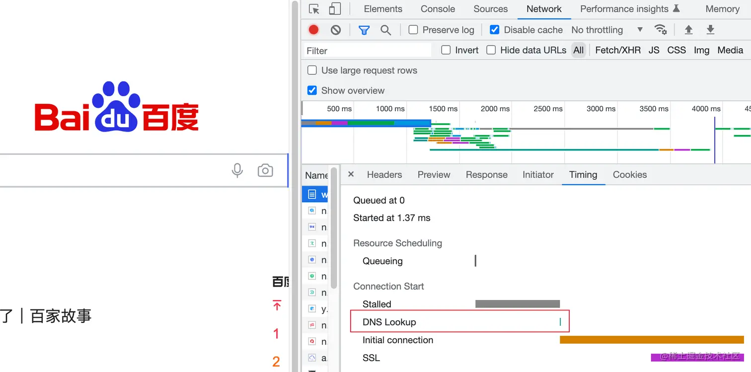 www.baidu.com可以看到网络请求时有 DNS Lookup 的过程: -