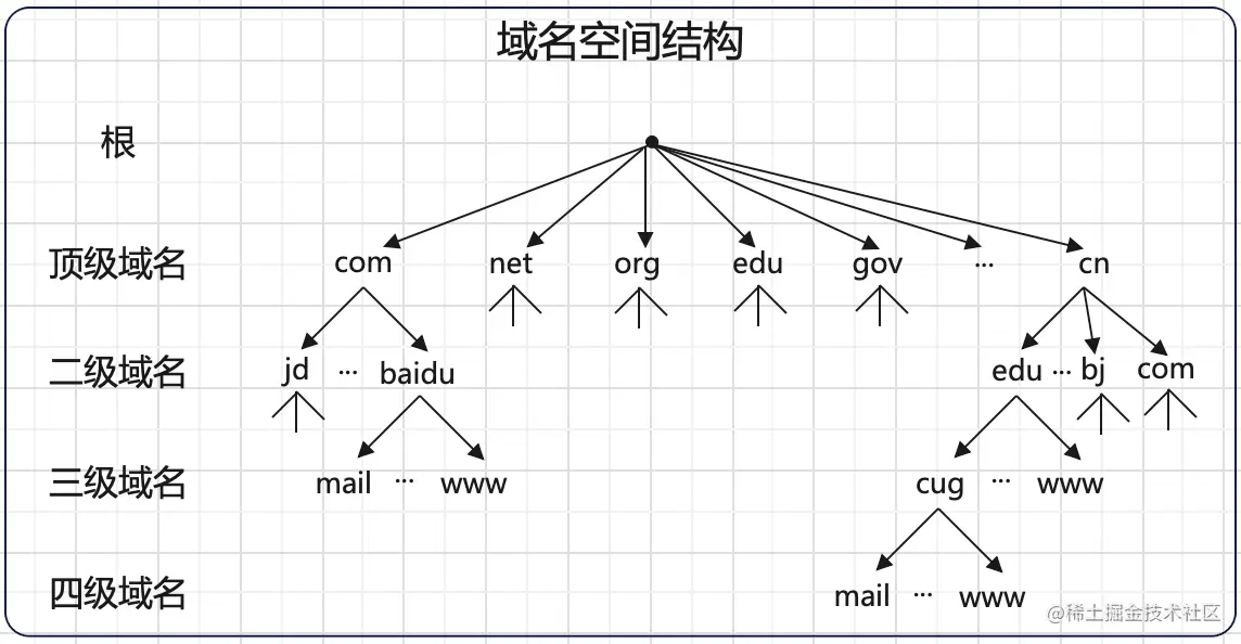 需要注意的是域名的层级并不是绝对的,比如顶级域名