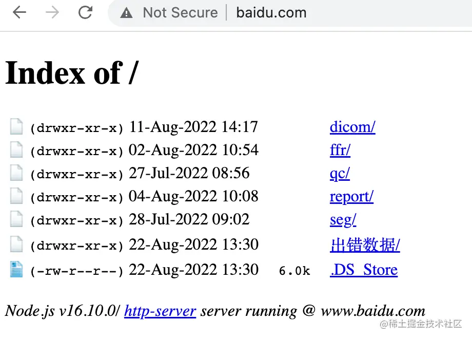 $ http-server --port 80 Starting up http-server, serving ./ http-server version: 14.0.0 http-server settings: CORS: disabled Cache: 3600 seconds Connection Timeout: 120 seconds Directory Listings: visible AutoIndex: visible Serve GZIP Files: false Serve Brotli Files: false Default File Extension: none Available on: http://127.0.0.1:80 http://192.168.1.155:80 http://10.8.0.22:80 Hit CTRL-C to stop the server再次打开百度,并没有跳转到