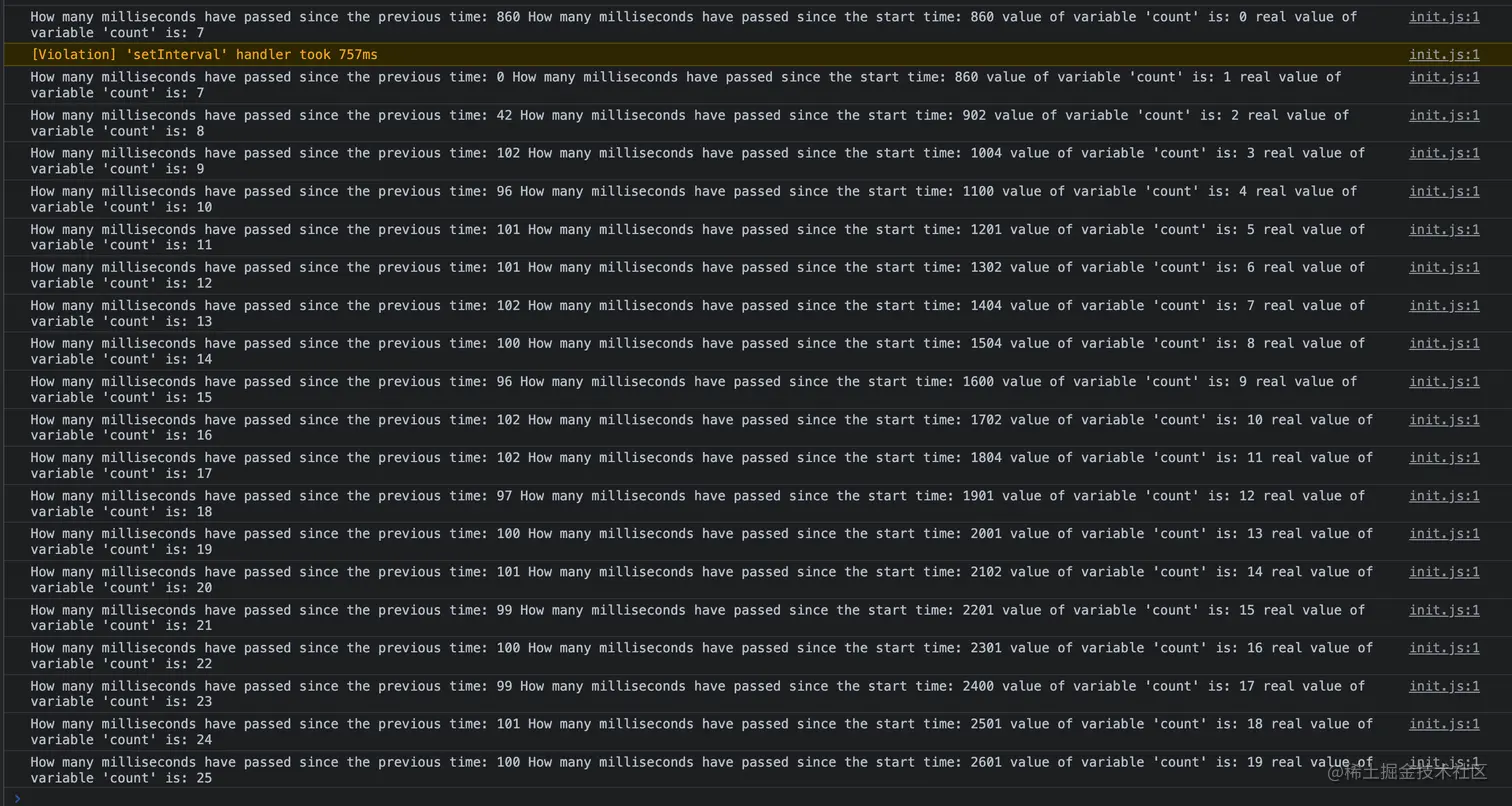 setTimeoutandsetInterval. After all, we can't see the page at all. - Considering the two situations of "inactive => active" and "blocking of time-consuming js tasks", in order to ensure the accuracy, we need to adjust the time precision in the callback.