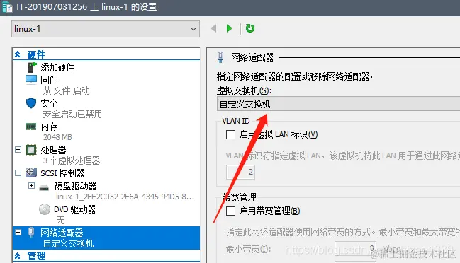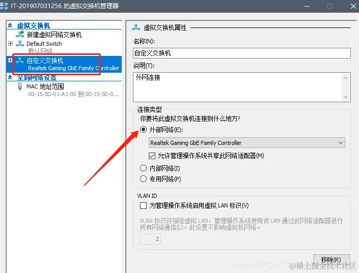 需要注意的是默认使用的网络交换机是不能访问外网的,这里需要重新创建一个虚拟网络交换机。