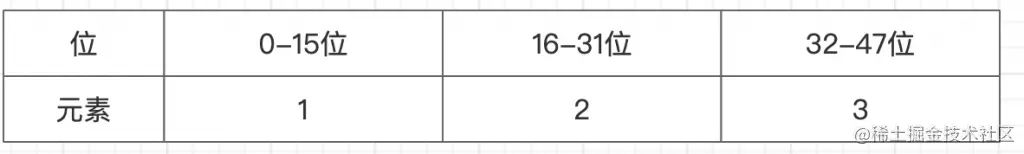 因为每个元素占有16为,所以整个数组的大小为48位,如图所示: