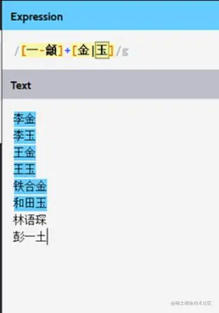 为什么被选择出来了呢,主要归功于两个符号第一个是(),第二个是\n(n代表一个数字)。这里()中的表达式被暂时保存了下来,按照顺序排列,你可以使用\1 \2 \3来重新使用它们,比如找出这个非主流的名字: