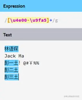 这个表达式就表示几乎所有的汉字了,为什么呢,因为每个国家的字符在计算机中均有一套编码(unicode码)来规定的,这个编码是16进制的,而所有的汉字的编码就都在一和龥(这个字念“龥”,对茫茫人海龥见你,就是这标题),所以这个表达式就足够表达了所有的汉字了。龥字打不出来?那就可以这么写: